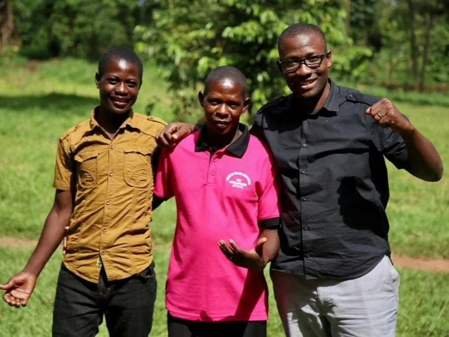Allan (left) in 2021 with his father and our partner Peter Sewakiryanga from Kyampisi Childcare Ministries. Allan is healthy and continuing his education.